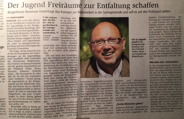 Schon am 29.März 2012 machte das Bürgerforum in der NEZ diese Schlagzeile und damit auch den ersten Versuch, die Samtgemeinde und die Stadt davon zu überzeugen, Kinder und Jugendlic