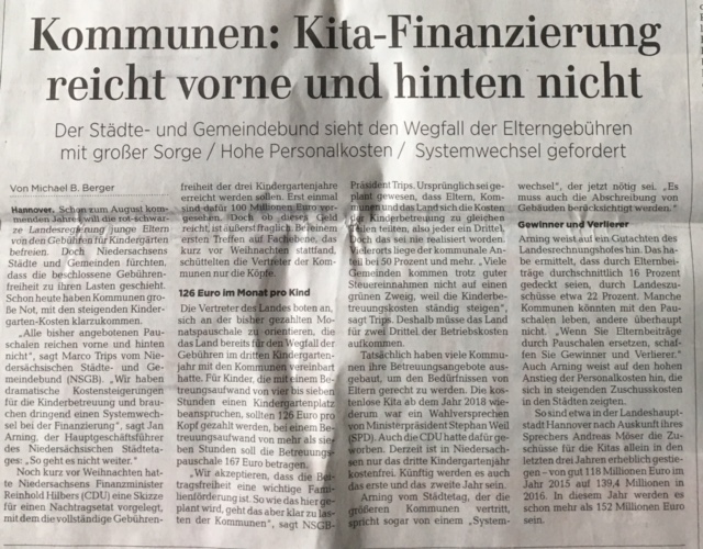 Hier ist der Text aus der HAZ von Heute. Der Journalist Michael B. Berger beschreibt die Position der Kommunen absolut treffend. Seit Jahren sagen wir als Bürgerforum, dass wir als Kommune „Druck von unten“ machen müssen, sonst bewegt sich in dieser Beziehung nix. Die erste Ebene ist der Landkreis, der ja eigentlich vom Gesetzgeber her zuständig ist und die steigenden Kosten seit 1986 nicht kostendeckend übernommen hat.