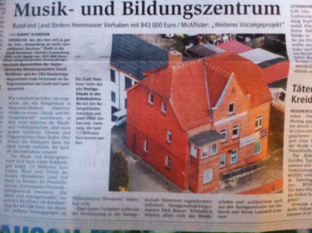 Nach dem Umbau der „Alten Post“ im Bestand, zum Kultur und Musikzentrum Hemmoor, steht schon ein sehr gelungenes Bauprojekt städteplanerischer Kompetenz der Einwohnerschaft aus der gesamten Region zur Verfügung. Dieses Projekt, war das beste Aushängeschild für das, was jetzt folgen soll. In der Zielvereinbarung des Kooperationsvertrages zwischen CDU und Bürgerforum steht : Wir wollen eine neue Stadthalle für Hemmoor. Es war unsere erste gemeinsame Entscheidung im Stadtrat von Hemmoor und das gleich zu Beginn der neuen Ratsperiode. Nach den anfänglichen Schwierigkeiten in der Förderbewilligung zeigte dann der Stadtdirektor sein Können, mit politischem Rückenwind und klaren Vorgaben unserer Gruppe, wurde der Fördertopf erneut angebohrt und der 13.4.2018 brachte dann dieses vom Zeitplan her überraschende Ergebnis. Jetzt kanns losgehen, mit der konkreten Bauplanung. Nun zeigt sich auch, wie wichtig es auch für unsere Stadt ist, Bürgermeister und Landtagsabgeordneten in einer Person wirkmächtig in politischen Entscheidungsebenen zu haben. Der Artikel in der NEZ spricht von einem „Glückstag für Hemmoor“.
