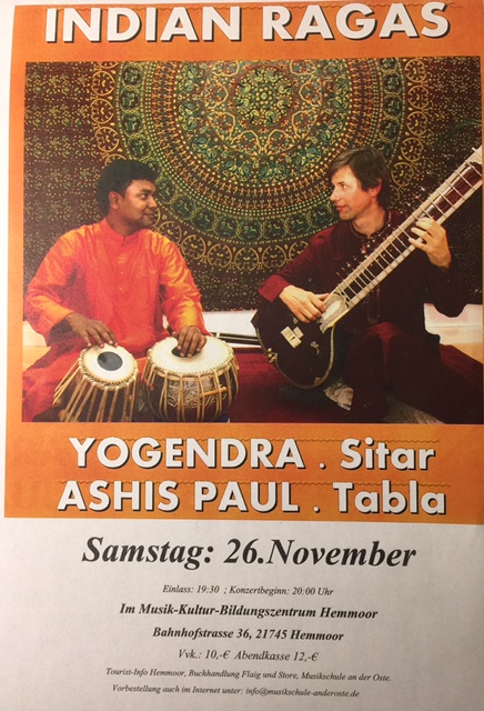 Musik-Kultur-Bildungszentrum Hemmoor INDIAN RAGAS Mit Yogendra Sitar und Ashis Paul, gibt es wieder Ragas mit Clubatmosphäre vom Feinsten. Kartenvorbestellung unter info@musikschule-anderoste.de